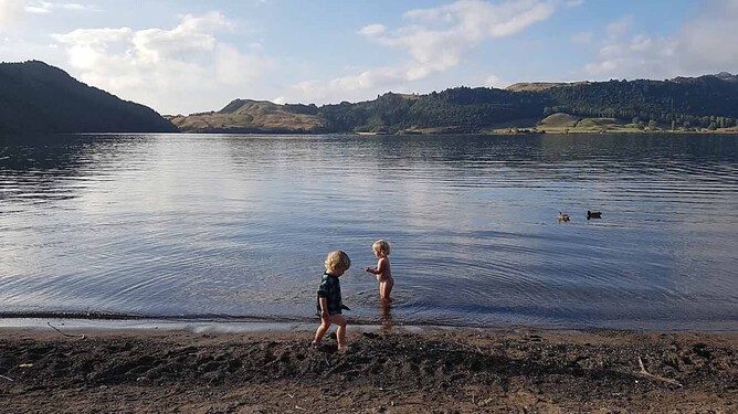 The Forest Loop is one of those trails that seems simple in its composition, but in totality offers something incredibly valuable to the forest we get to enjoy as part of our extended backyard: an accessible, scenic, and purposeful trail linking the entire perimeter of the Whaka Trails network in a loop that can either be a journey unto itself, or a means to an end. Winding up the face of Tokorangi Pā we were afforded panoramic views of our hometown in all its steaming, sulphuric glory, enjoying a snack stop for the two Baby Bikers along the way. The on-road descent felt glorious after the sweaty efforts of our climb in the late afternoon February sun, and the final stretch around the lakeside promontory eased us away from suburban life and into the true outdoors.